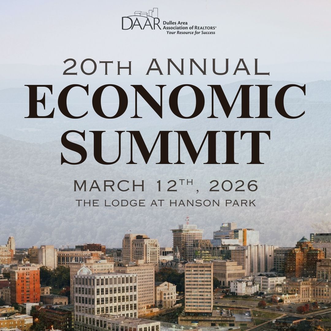 12 Mar 2026 Economic Summit 2026 Economic Summit Thursday, March 12, 2026 (8:30 AM to 11:30 AM) The Lodge at Hanson Park 20th Annual Economic Summit Details You're Registered! DescriptionLocation This event offers an opportunity for REALTORS® in Loudoun County, and the greater northern Virginia area to understand housing and economic trends and forecast for 2026, and how they can impact your business. National, state and local data will be shared. Breakfast included. Check-in and same day registration begins at 8:30AM, program beings at 9:00AM. Featured speakers: Dr. Lawrence Yun , Chief Economist, National Association of REALTORS® Dr. Lisa Sturtevant, Chief Economist, Bright MLS The Lodge at Hanson Park 23394 Endeavor Dr.Aldie, VA 20105 Map & Directions